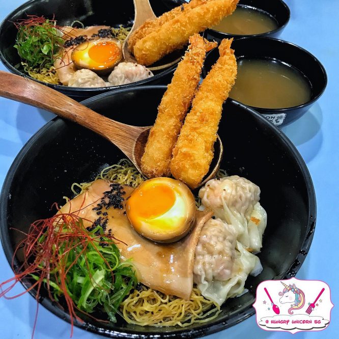 Singapore Style Ramen, $9/$12/$16 from 𝐀 𝐍𝐨𝐨𝐝𝐥𝐞 𝐒𝐭𝐨𝐫𝐲 ⠀⠀7 Maxwell Rd, Amoy Street Food Centre, unit 01-39, S 069111⠀ Mom-Fri:11.15am-2pm, 5.15-7pm /Sat:10.45am-1.15pm (They might close early if sold out so be there earlier)⠀⠀⠀Another highly popular food stall in Amoy Street Food Centre. 𝐀 𝐍𝐨𝐨𝐝𝐥𝐞 𝐒𝐭𝐨𝐫𝐲 was awarded Michelin Bib Gourmand, Hawker Top 100 and many more! It comes in 3 sizes, small $9, medium $12 and large $16. We ordered the small bowl for $9 and the bowl was filled with lots of different ingredients! A relatively good portion of noodles that’s very thin and springy, we felt it’s some sort like HK style wanton noodle. There also a half soy-flavoured hot spring egg, 2 huge and fat wantons stuffed with meat and prawns, a thin and amazing melt-in-your-mouth cha Siu and 2 tempura prawns(we would told that today it’s tempura prawns instead of their signature crispy potato-wrapped prawns, honestly we were a lil disappointed 😕 coz we came for that..) There’s also a small bowl of soup that’s pretty tasty and has a lil herbal taste to it, interesting! It was an enjoyable and interesting bowl of Singapore Style Dry Ramen ! Highly recommended if you hadn’t try them! ⠀ ⠀⠀⠀#hungryunicornsg #sgunited #savefnbsg #anoodlestory #michelinbibgourmand #singaporestyleramen #amoystreetfoodcentre @anoodlestory